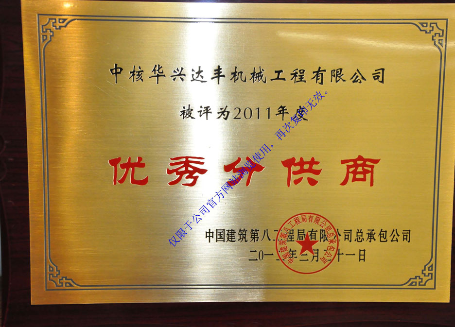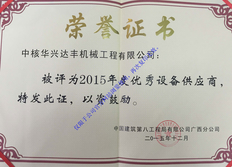 2015年度優(yōu)秀設(shè)備供應(yīng)商(中建八局廣西分公司)