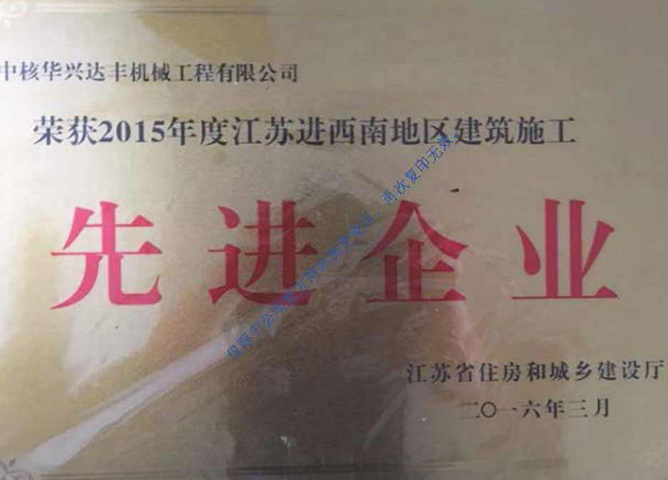 2015年度江蘇進(jìn)西南地區(qū)建筑施工先進(jìn)企業(yè)