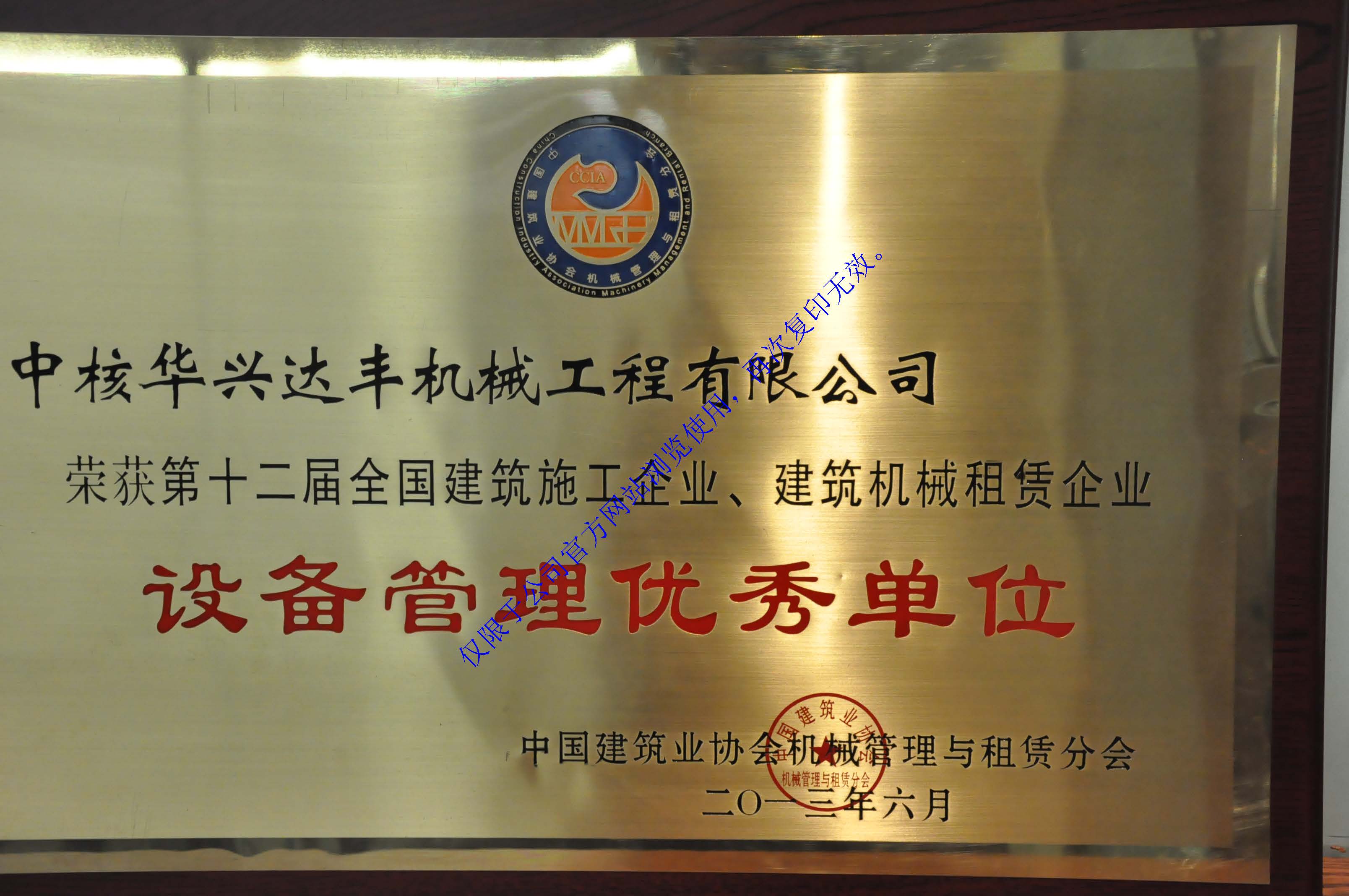 第十二屆全國建筑施工企業(yè)、建筑機械租賃企業(yè)設(shè)備管理優(yōu)秀單位