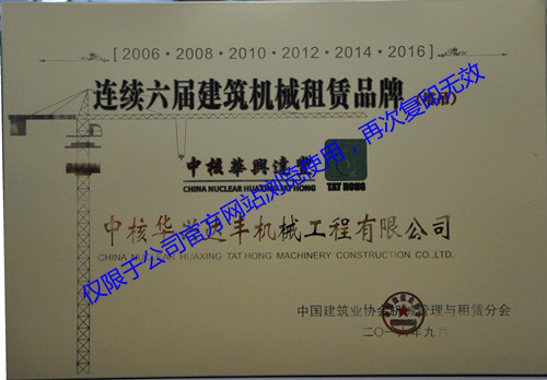 2006、2008、2010、2012、2014、2016連續(xù)六屆建筑機械租賃品牌