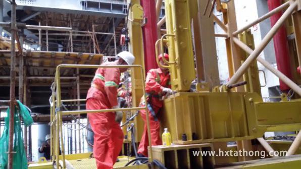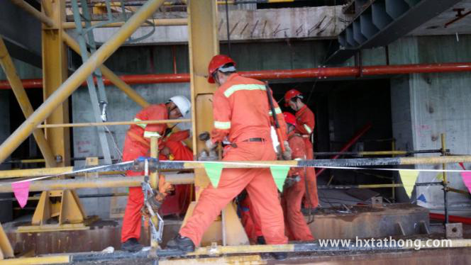 圖為塔機(jī)爬升后施工人員在進(jìn)行清理工作