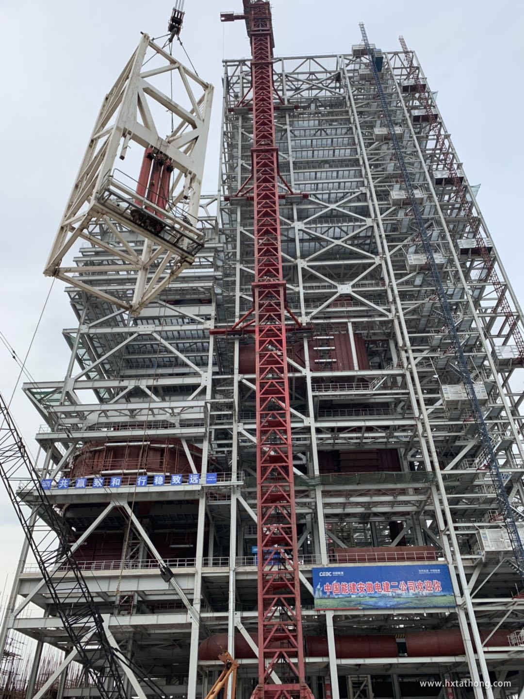 STT3330?160t作為我司配合項目上使用的最大噸米數(shù)塔機,在拆卸過程中遇到的技術(shù)難題也不容小覷,塔機共3道附墻裝置,高度約160m,最重部附件下回轉(zhuǎn)機構(gòu)達到40t,拆卸全過程高拆,拆卸難度較大,塔機停機后影響鍋爐受熱面吊裝,項目總包、業(yè)主、監(jiān)理、安徽電建二公司對此次拆除高度重視,進場作業(yè)前組織相關(guān)部門及人員進行安全技術(shù)交底。
