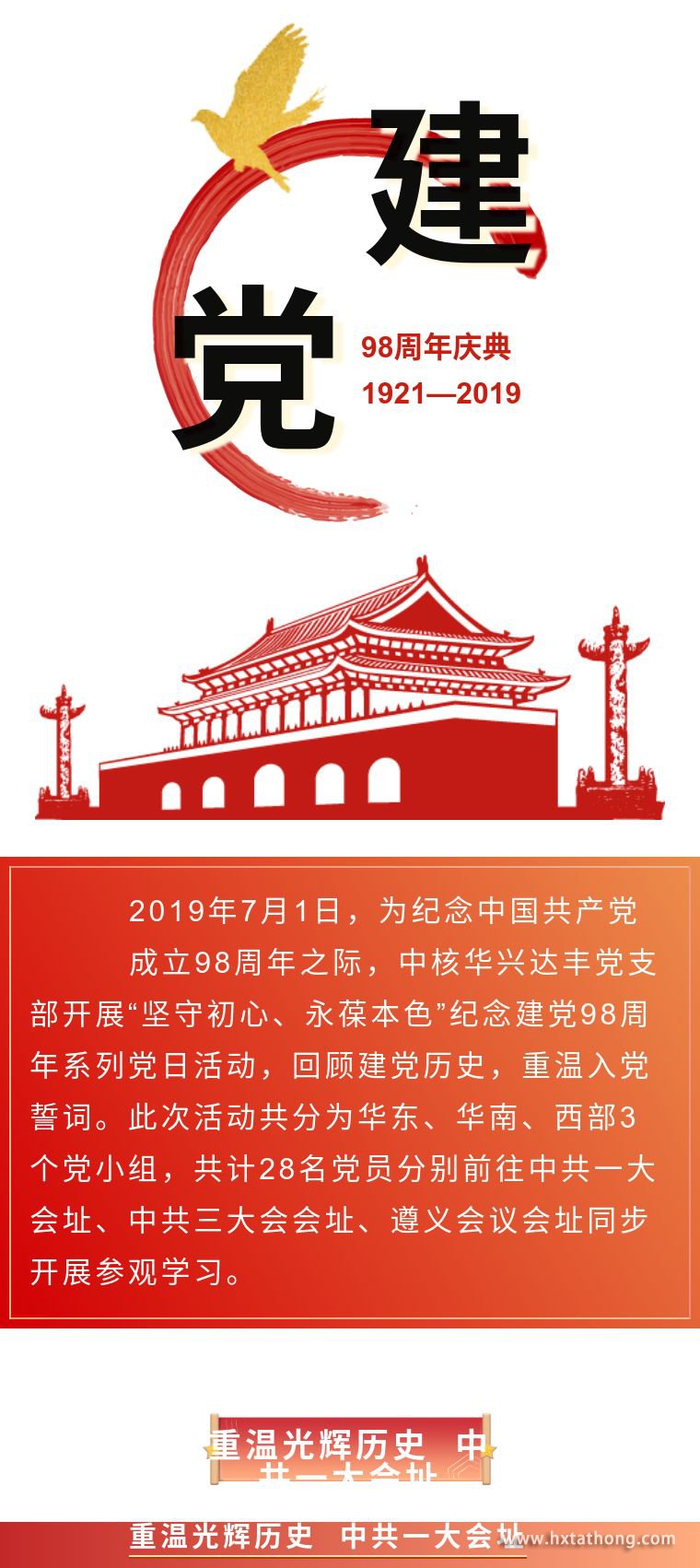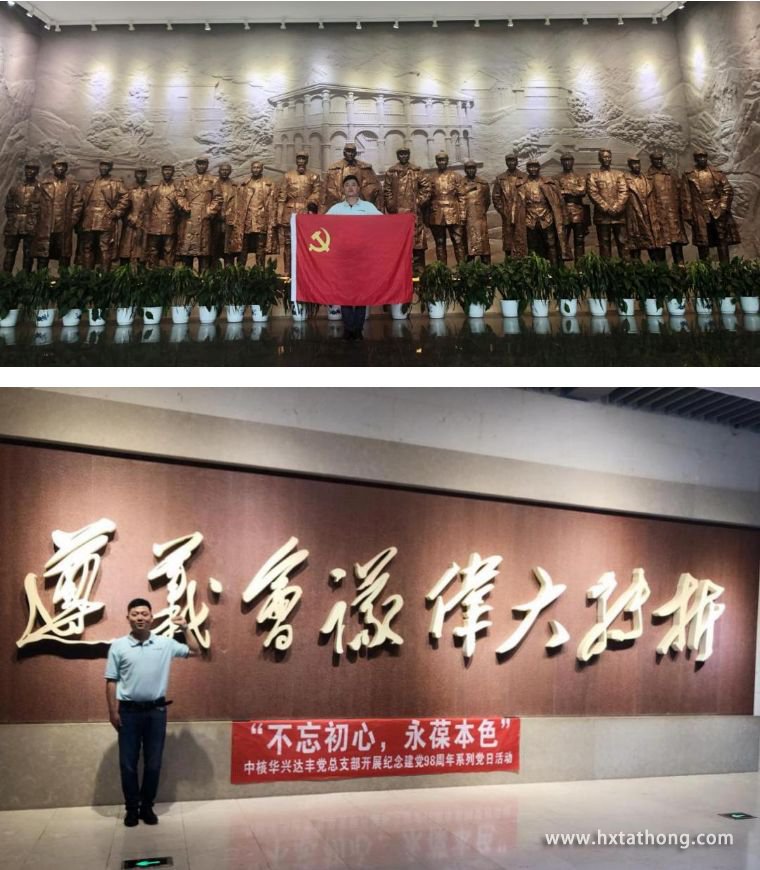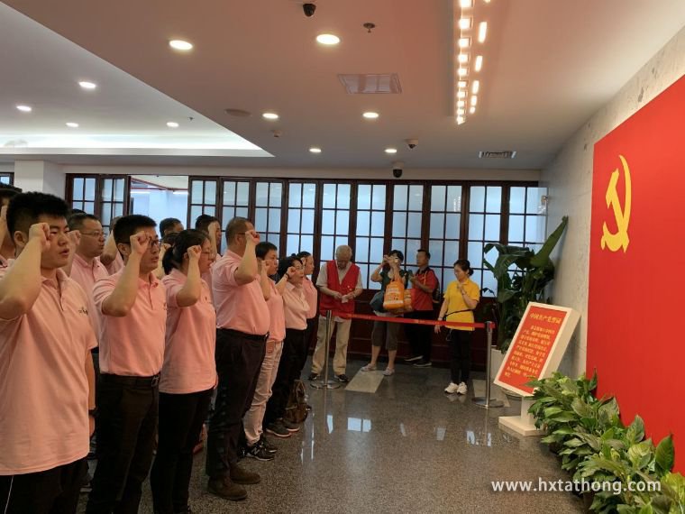 在紀(jì)念館一層序廳,由中核華興達(dá)豐黨支部書(shū)記朱輝領(lǐng)誓,全體黨員面對(duì)鮮紅的黨旗進(jìn)行了莊嚴(yán)宣誓,錚錚誓言召喚著初心,提醒著我們要始終堅(jiān)守“堅(jiān)守初心、永葆本色”的信念。