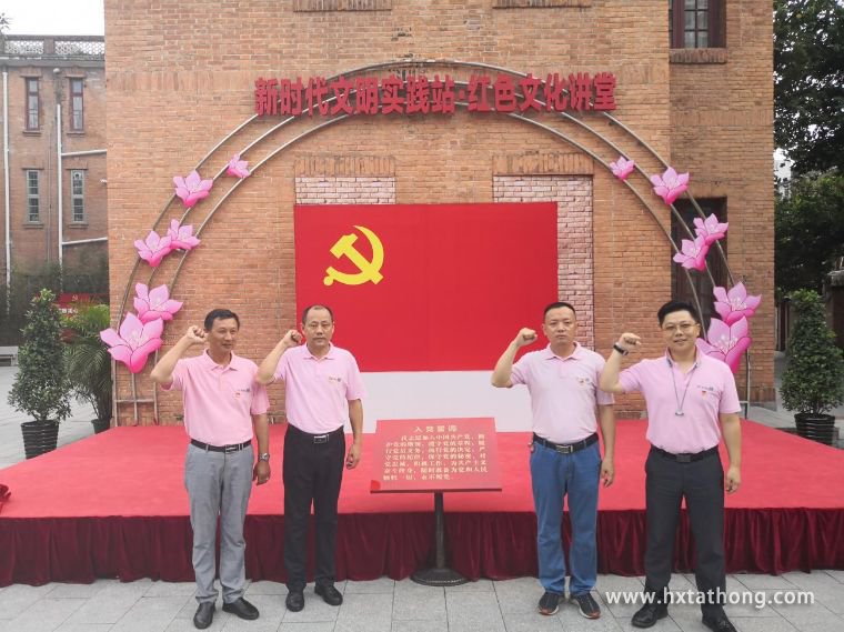在中共三大會(huì)址遺址廣場(chǎng),華南區(qū)域黨小組全體黨員面對(duì)黨旗,舉起右手,緊握拳頭,重溫入黨誓言:“我志愿加入中國(guó)共產(chǎn)黨,擁護(hù)黨的綱領(lǐng),遵守黨的章程……隨時(shí)為黨和人民犧牲一切,永不叛黨”。