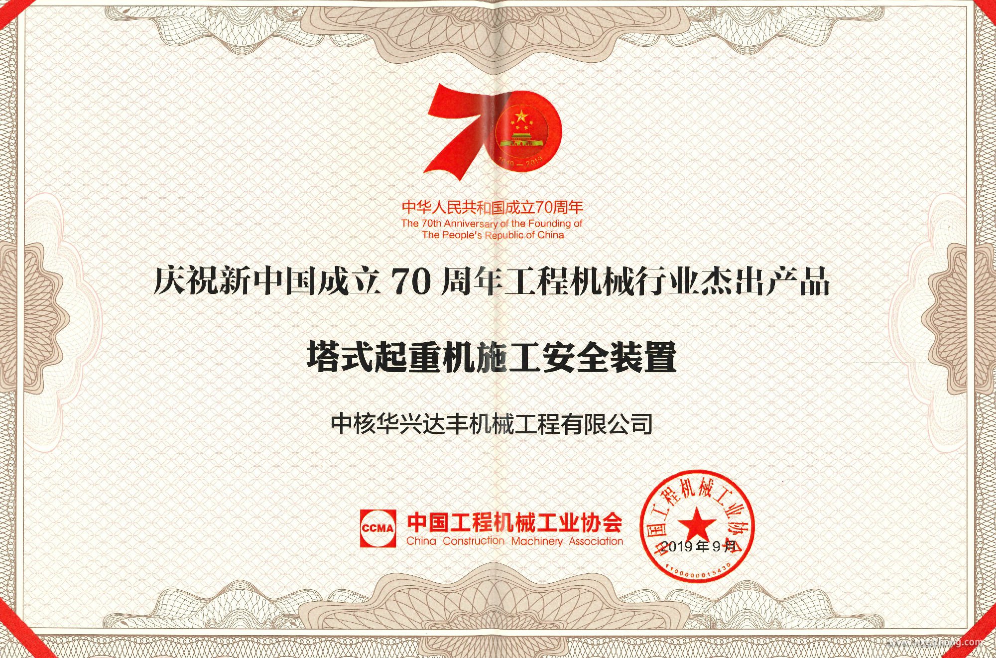 為慶祝新中國(guó)成立70周年,見(jiàn)證和宣傳70年來(lái)工程機(jī)械行業(yè)的發(fā)展成就,中國(guó)工程機(jī)械工業(yè)協(xié)會(huì)組織并開(kāi)展慶祝新中國(guó)成立70周年工程機(jī)械行業(yè)輝煌成就評(píng)選活動(dòng)。中核華興達(dá)豐機(jī)械工程有限公司申報(bào)“塔式起重機(jī)施工安全裝置”榮獲“工程機(jī)械行業(yè)杰出產(chǎn)品”、副總經(jīng)理王洋榮獲“工程機(jī)械行業(yè)突出貢獻(xiàn)人物”榮譽(yù)。