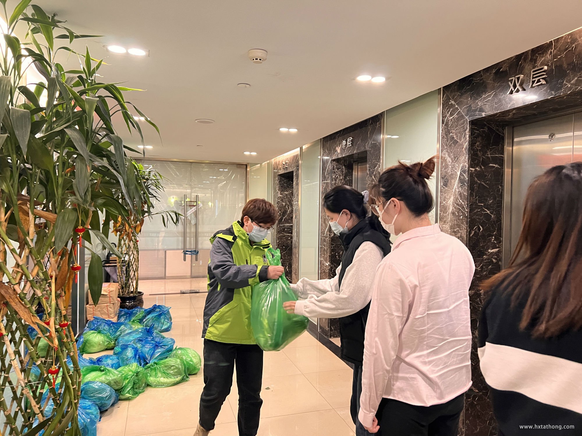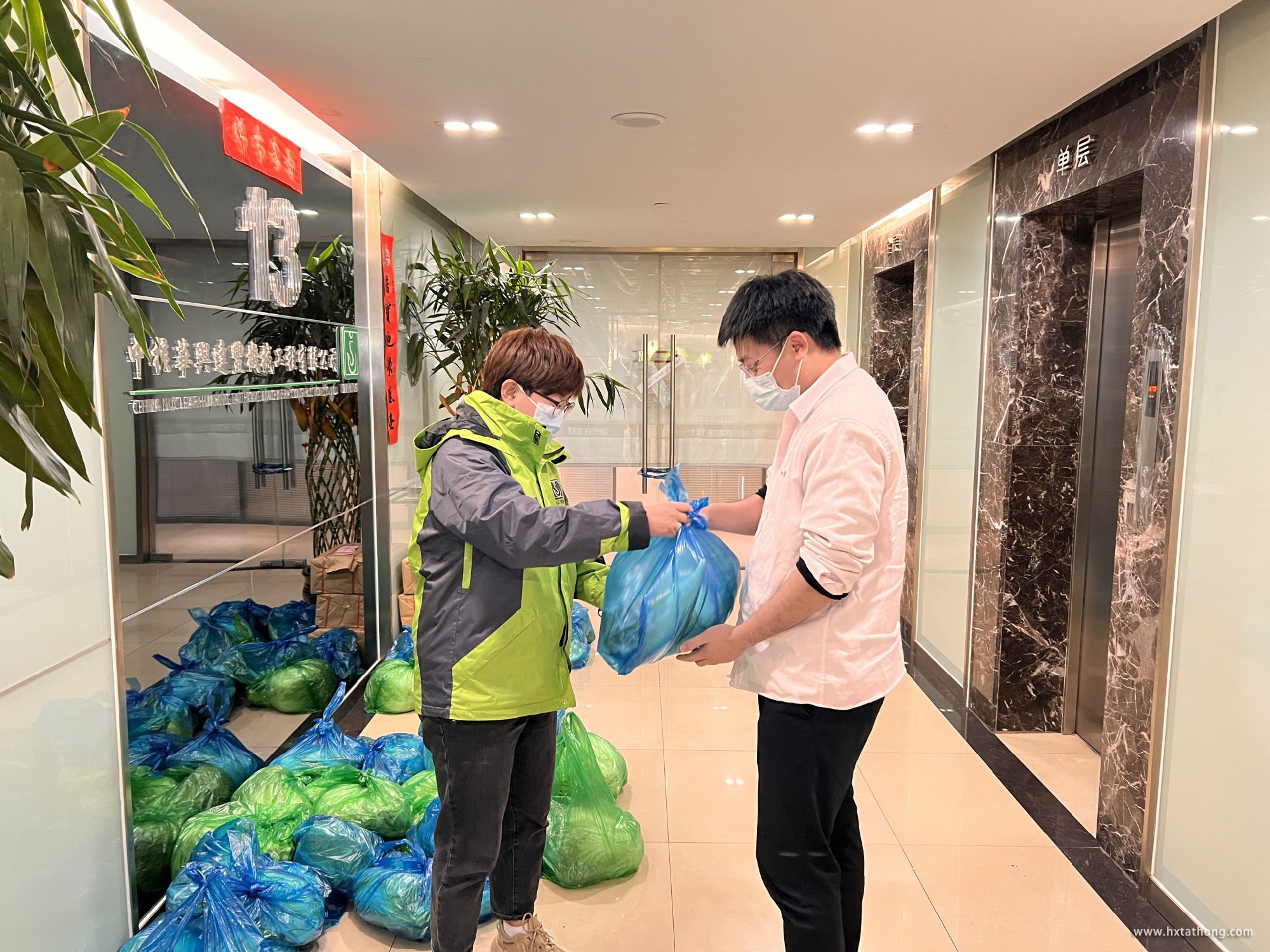 劉經(jīng)理為大家分配蔬菜