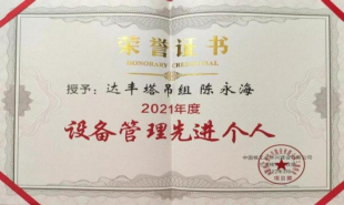 陳永海經(jīng)理在三澳核電項(xiàng)目部通過(guò)自身不斷努力,精心打造一批專業(yè)的塔吊團(tuán)隊(duì),贏得中廣核領(lǐng)導(dǎo)和項(xiàng)目部領(lǐng)導(dǎo)對(duì)塔吊隊(duì)工作的肯定及認(rèn)可,2021年度不僅自己榮獲中國(guó)核工業(yè)華興建設(shè)有限公司頒發(fā)的“2021年度設(shè)備管理先進(jìn)個(gè)人”的榮譽(yù)證書: