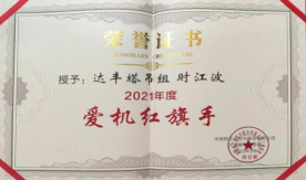 時(shí)江波被中國(guó)核工業(yè)華興建設(shè)有限公司評(píng)為:“2021年度愛(ài)機(jī)紅旗手”