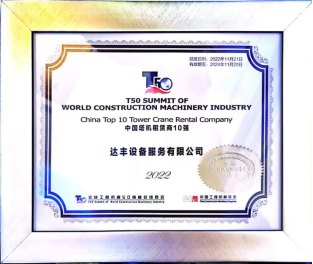 恭喜達(dá)豐設(shè)備服務(wù)有限公司榮獲“中國塔機(jī)租賃商10強(qiáng)”