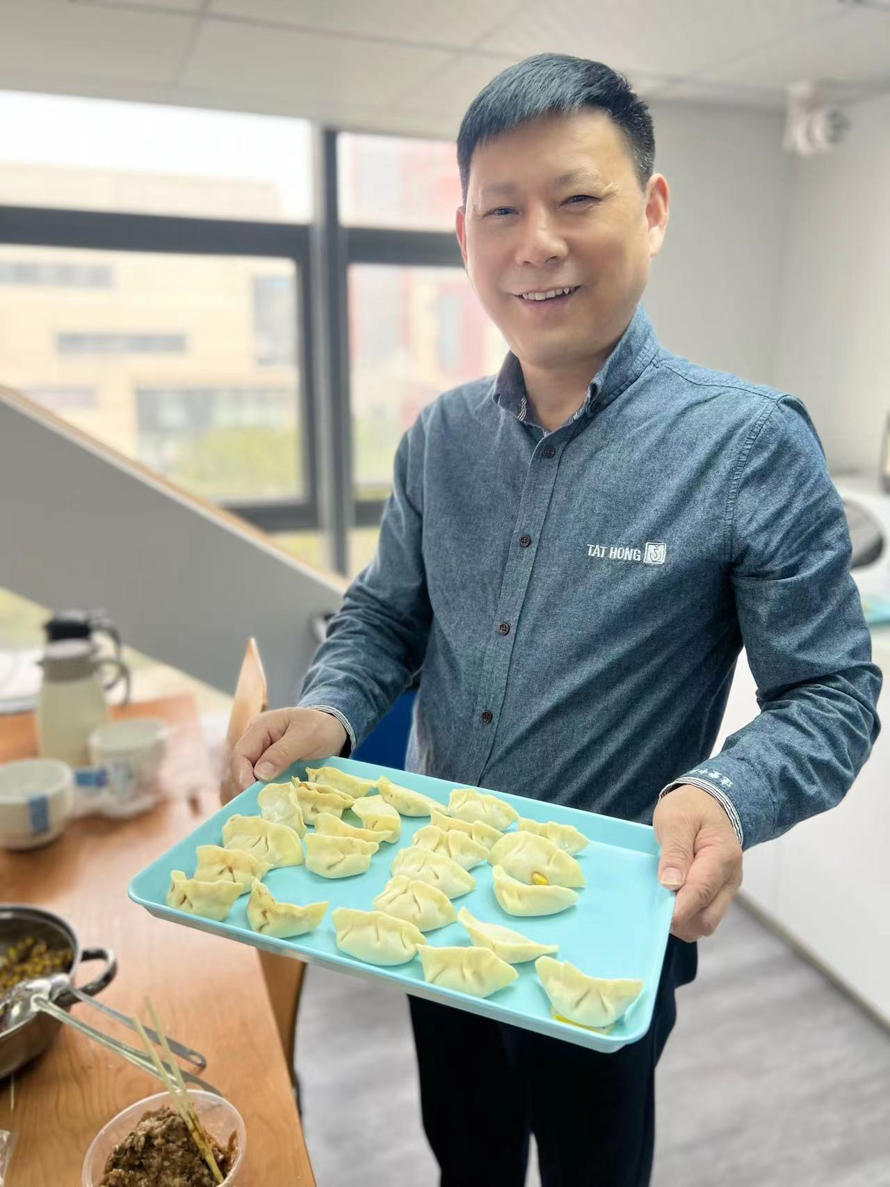 上午九點(diǎn),包餃子活動(dòng)準(zhǔn)時(shí)開(kāi)始,男同胞們個(gè)個(gè)興致勃勃、熱情高漲、各顯身手,不亦樂(lè)乎忙著手里的“包餃子工程”。 三三兩兩搭伙成群,擼胳膊挽袖子,包餡兒干起來(lái)!大家一邊切磋包餃子的技巧,一邊互相交流,活動(dòng)現(xiàn)場(chǎng)歡聲笑語(yǔ),每個(gè)人的臉上都洋溢著甜甜的笑容。