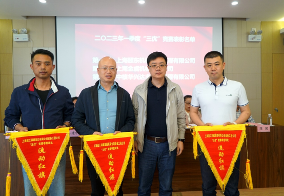 上海建工四建集團(tuán)有限公司設(shè)備工程公司開展每季度的“三優(yōu)”評選主旨是切實履行設(shè)備工程公司專業(yè)公司的服務(wù)職能,更好的為集團(tuán)所屬項目提供優(yōu)質(zhì)的施工機(jī)械服務(wù);提高服務(wù)質(zhì)量。本季度合計參加競賽的專業(yè)分包隊伍40余家,經(jīng)過評選,中核華興達(dá)豐機(jī)械工程有限公司在40余家專業(yè)分公司隊伍競賽得分中名列前茅,并榮獲“三優(yōu)競賽季度評比”流動紅旗一面。鄭總代表我司上臺領(lǐng)取流動紅旗。