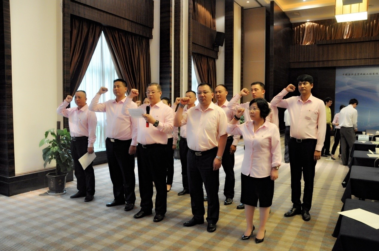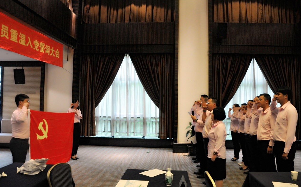黨員及入黨積極份子整齊列隊在黨旗前,經(jīng)歷過莊嚴(yán)的“國際歌”洗禮之后,主持人宣讀了上級黨委文件,宣布朱輝同志擔(dān)任中核華興達豐機械工程有限公司黨支部新一任黨支部書記。接著,由新任黨支部書記朱輝同志帶領(lǐng)現(xiàn)場全體黨員和入黨積極份子舉右手握拳過肩,重溫入黨誓詞——