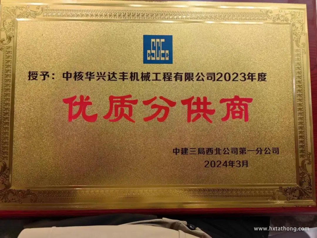 2024年3月7日,中建三局西北公司第一分公司2024年分供商大會在陜西省西安舉行。會上,中核華興達豐榮獲“2023年度優(yōu)質(zhì)分供商”榮譽稱號,獲此殊榮彰顯了我司卓越的技術水平和優(yōu)質(zhì)的服務能力。
