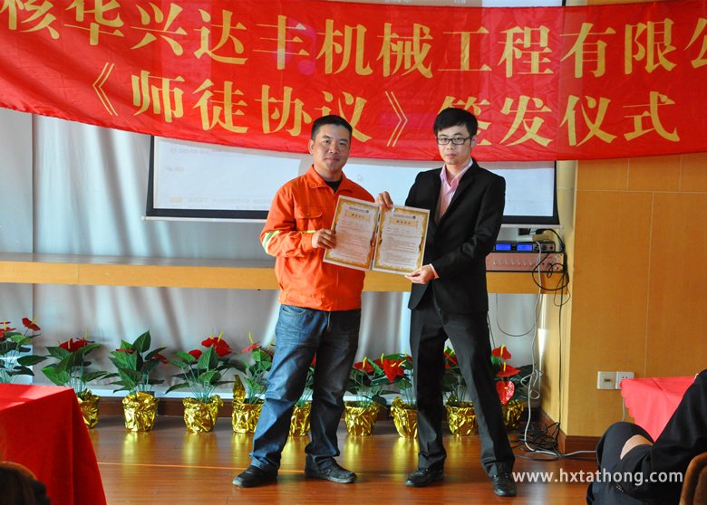 這是中核華興達(dá)豐機(jī)械工程有限公司首屆《師徒協(xié)議》簽發(fā)儀式,這不僅是一紙協(xié)議,更是一份責(zé)任和承諾。接下來(lái),公司還將在重慶管理中心區(qū)域和廣州管理中心區(qū)域分別舉行《師徒協(xié)議》的簽發(fā)儀式。公司希望讓更多的優(yōu)秀人才將企業(yè)文化和優(yōu)良傳統(tǒng)的精髓永遠(yuǎn)傳承和延續(xù)下去!