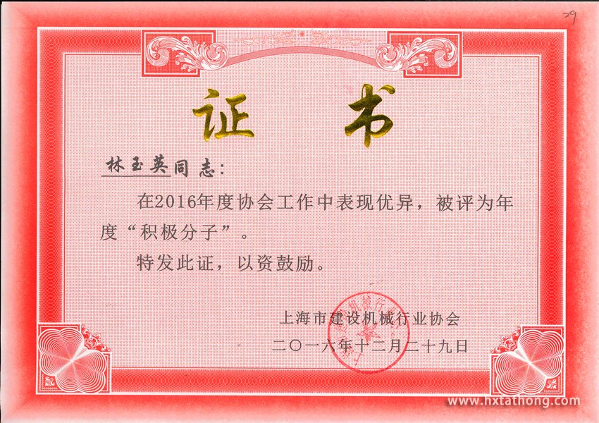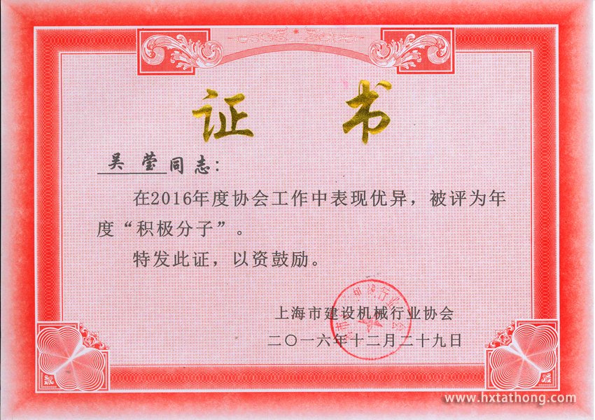 上海市建設(shè)機(jī)械行業(yè)協(xié)會(huì)積極分子證書