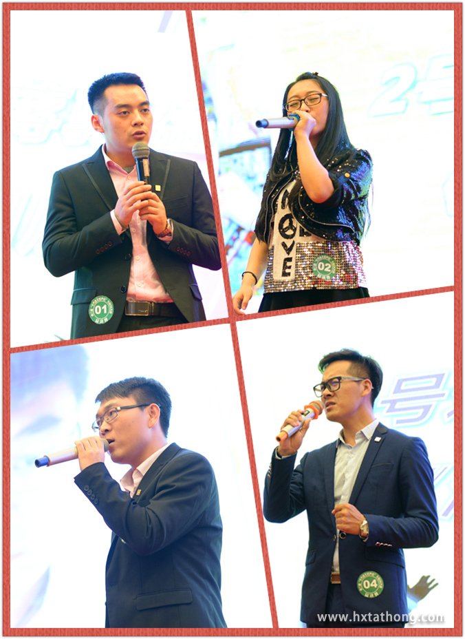 接下來(lái)上場(chǎng)的是來(lái)自人事行政管理中心的南進(jìn)雷,他以一曲日文版的《時(shí)光流逝》贏得了全場(chǎng)歡呼。6號(hào)選手蔣建平,來(lái)自四川分公司的一線(xiàn)員工,他身穿少數(shù)民族服裝,深情演唱《姑娘我愛(ài)你》,將比賽推入高潮,現(xiàn)場(chǎng)氣氛異常熱烈!接下來(lái)上臺(tái)的是7號(hào)選手,深圳分公司老牌歌神張堅(jiān),他在歷年的卡拉OK大賽中都曾斬獲比賽,此次他的參賽歌曲《Don't Break My Heart》將他的實(shí)力展現(xiàn)無(wú)遺,贏得了全場(chǎng)的熱烈掌聲。8號(hào)選手孟凡東,是上海賽區(qū)優(yōu)勝選手,一曲《I believe》為大家?guī)?lái)一場(chǎng)聽(tīng)覺(jué)盛宴。