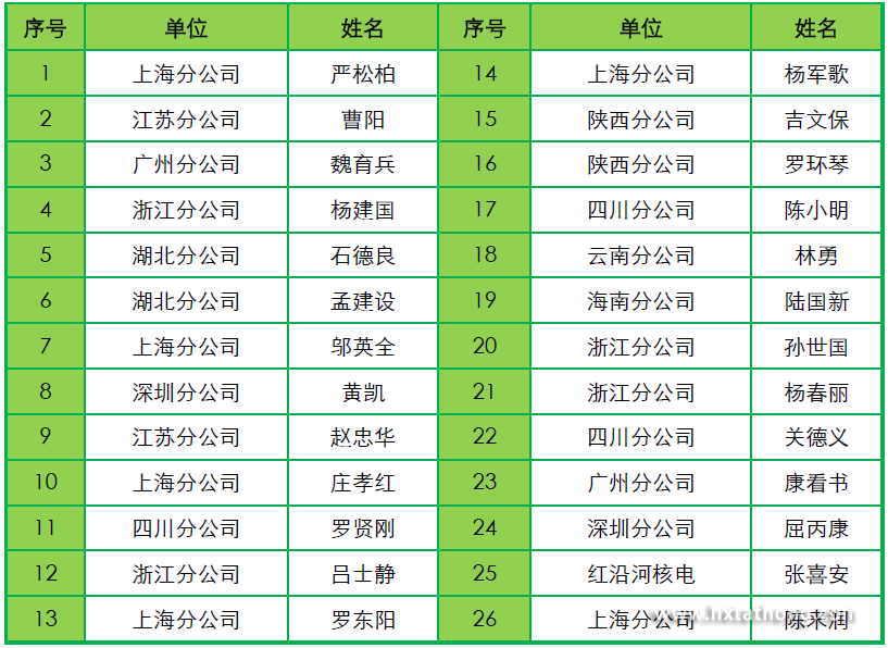二、獲得“2016年下半年崗位明星” 稱號名單(26人)