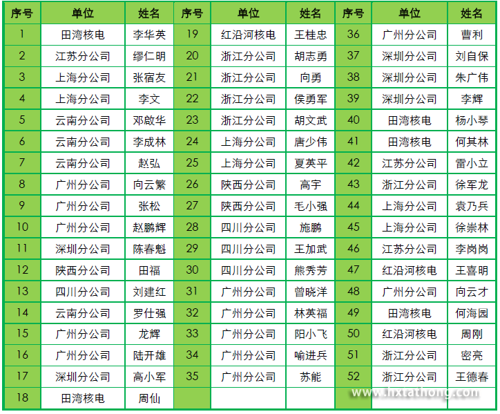 三、獲得“2016年下半年崗位能手” 稱號名單(52人)