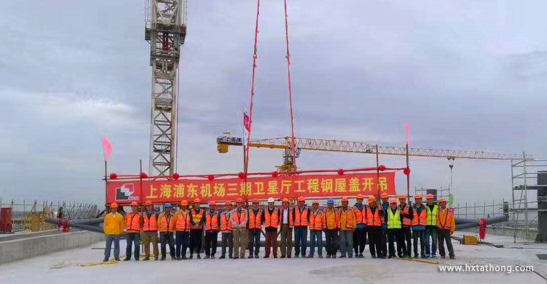 上海浦東機場T3航站樓項目是由上海建工集團總承包,而結構安裝部分工程由上海機施集團第一工程公司完成,其中就包括航站樓衛(wèi)星廳及捷運站鋼結構安裝工程。根據(jù)甲方鋼結構重量及吊裝的要求,我司在此項目中安裝了4臺永茂STT2200-80t塔機,同時此4臺塔機也是整個上海區(qū)域內運行的最大起重量的平頭塔機。浦東機場T3航站樓項目任務重、時間緊,我司對該項目也十分重視,在核心領導層的關心下,我司從前期的技術配合、設備的準備工作、安裝工藝的培訓及現(xiàn)場操作人員的選拔等都下了很大的功夫。