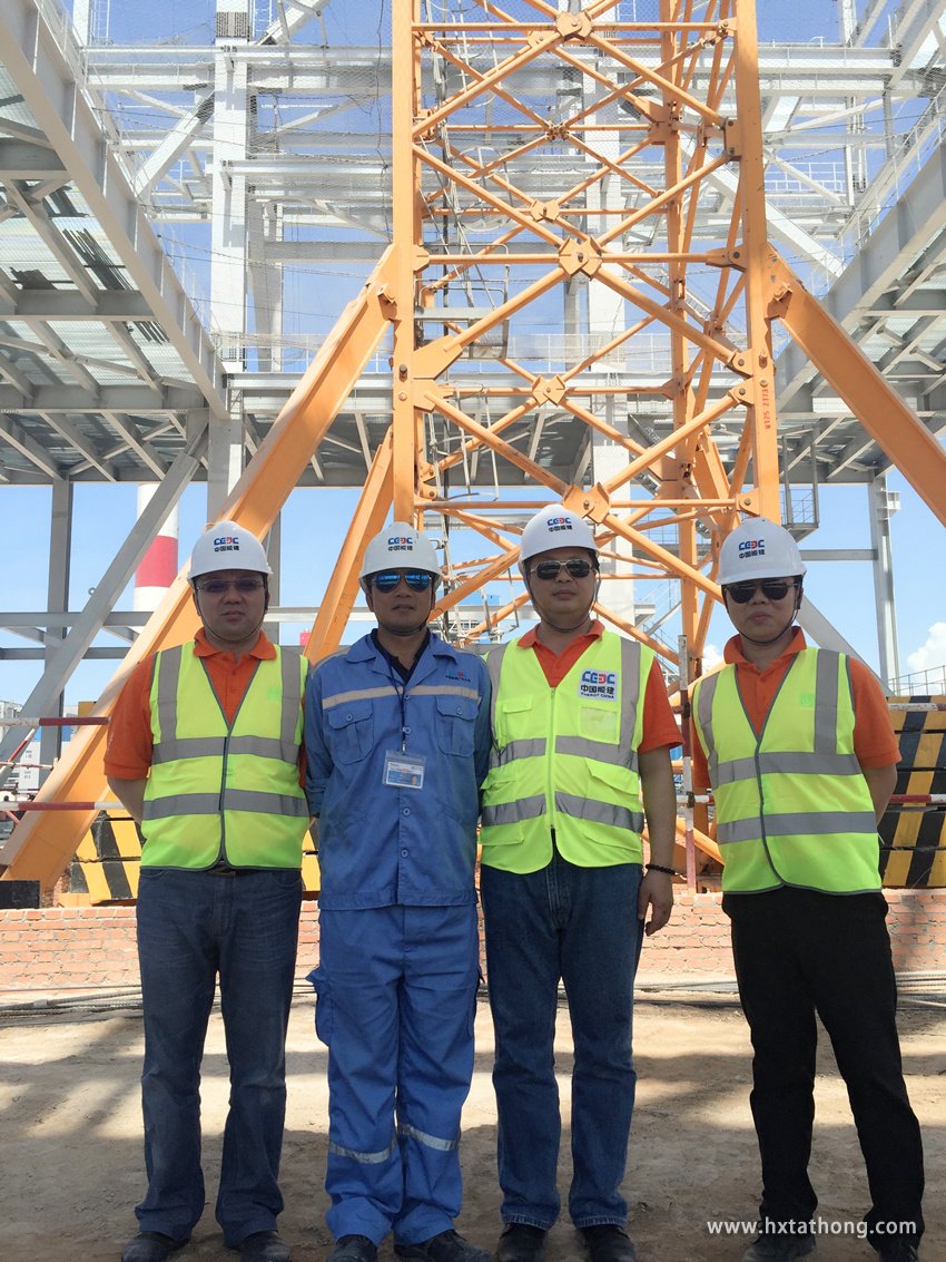 由于地理位置的差異,相對于國內(nèi)大部分區(qū)域,越南常年氣溫偏高、雨季較長,而平順省位于越南中南部,雨季時暴雨多,雨量大。此外,每年的11月到次年的3月是平順省的風季,最大可達12級的大風,惡劣的天氣對施工人員的安全帶來極大挑戰(zhàn),也給正常施工增加了難度。然而,華興達豐人不畏艱險,憑借過硬的技術(shù)和驚人的毅力,“高標準、嚴要求”配合項目工期,安全、順利完成塔機施工服務(wù)任務(wù),獲得了項目及甲方的一致認可。