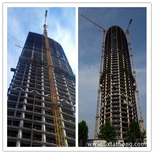 陜西延長(zhǎng)石油科研中心項(xiàng)目位于西安高新區(qū),由地上46層和裙房5層組成的大型建筑,我司主要負(fù)責(zé)塔樓兩臺(tái)STT553-24t塔機(jī)的施工服務(wù),兩臺(tái)塔機(jī)安裝高度達(dá)到了240多米。