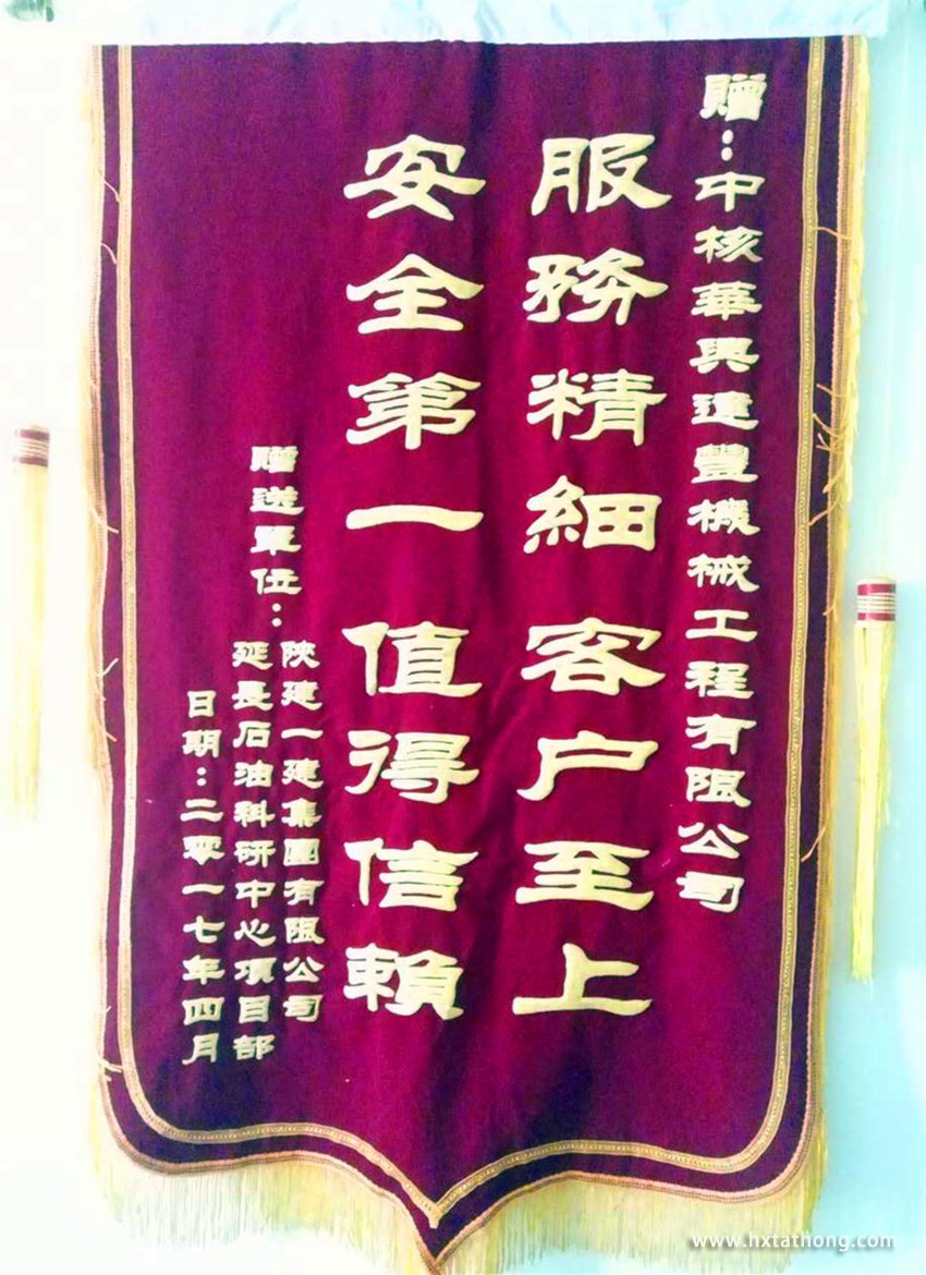4月30日,在陜西延長(zhǎng)石油科研中心項(xiàng)目部召開的總結(jié)會(huì)議上,項(xiàng)目部行宏經(jīng)理將印有“服務(wù)精細(xì)、客戶至上,安全第一、值得信賴” 16個(gè)字的錦旗以及“安全業(yè)績(jī)證明”頒發(fā)給了中核華興達(dá)豐陜西分公司安拆人員。這是陜西一建集團(tuán)公司對(duì)我司陜西延長(zhǎng)石油科研中心項(xiàng)目服務(wù)的最高評(píng)價(jià)。