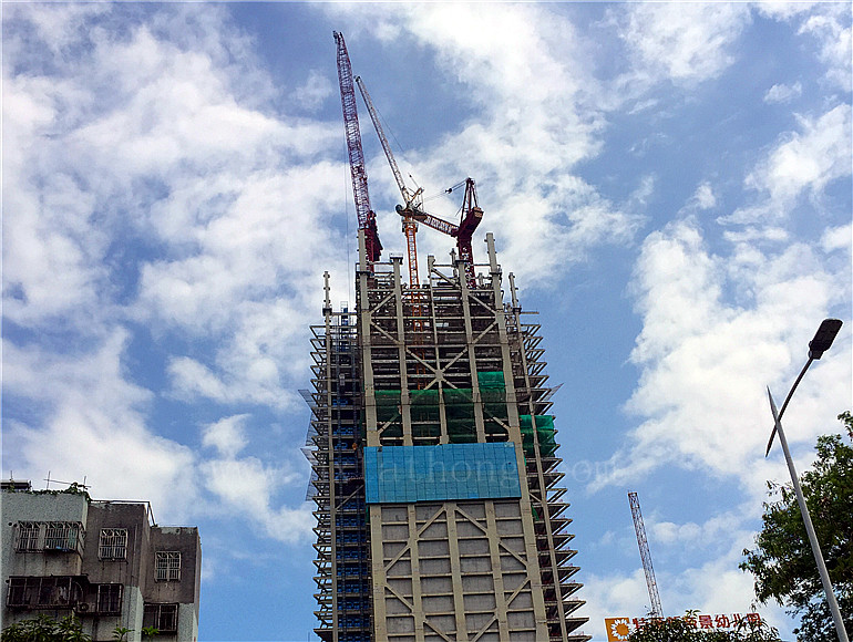 上海國際金融中心”項目選址于上海浦東新區(qū)竹園商貿(mào)地塊,浦東新區(qū)楊高南路378號。地塊周邊地界為竹林路(規(guī)劃中)以東,張家浜河以北,楊高南路以西,北與竹園商貿(mào)區(qū)2-16地塊緊鄰。上海國際金融中心是由上海證券交易所、中國金融期貨交易所股份有限公司、中國證券登記結(jié)算有限公司三家建設(shè)單位投資開發(fā)的建筑群體。其總共由中結(jié)算、中金所和上交所等三幢高層塔樓、連成整體的地下層以及廊橋等結(jié)構(gòu)組成,鋼結(jié)構(gòu)總量約5.7萬噸。三棟塔樓地下室為連通整體的結(jié)構(gòu),地下均為5層,地下室頂板面標(biāo)高為-26.250m。三棟塔樓地上結(jié)構(gòu)呈品字形分布,塔樓結(jié)構(gòu)基本相同,均采用核心筒外框混合結(jié)構(gòu)體系(外圍鋼管混凝土群柱-鋼框架梁-混凝土雙核心筒),共設(shè)有三道巨型支撐桁架,桁架高度在10~15m。三棟塔樓高度和外圍尺寸大小均有所不同,其中,上交所塔樓地上32層,高度210m,平面尺寸70m×70m;中金所塔樓地上30層,高度190m,平面尺寸70m×52m;中結(jié)算塔樓地上22層,高度147m,平面尺寸40m×70m。